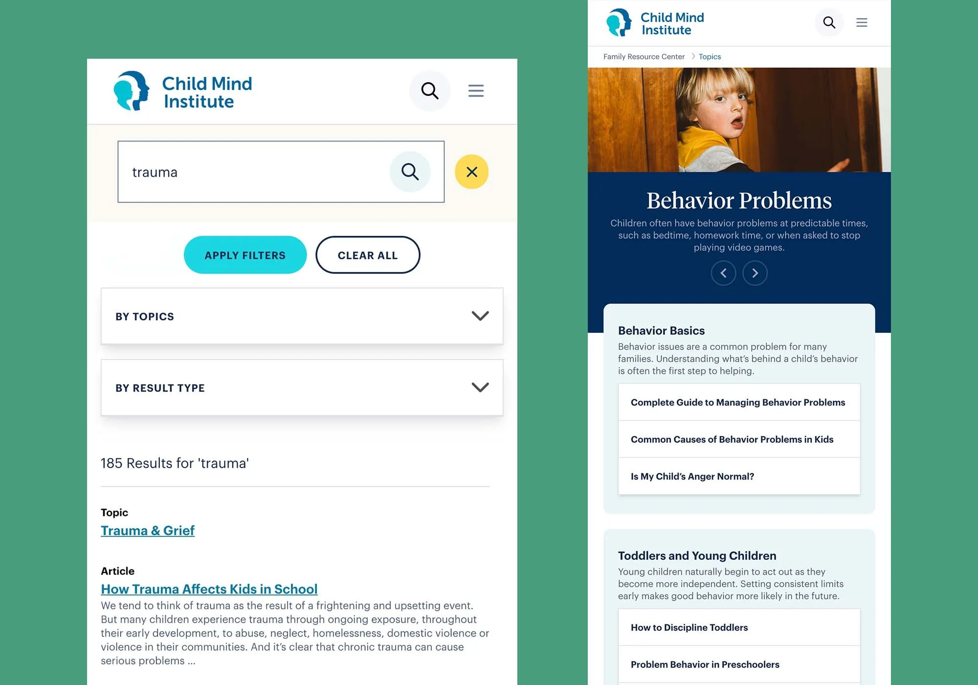 The Child Mind Institute faced a significant challenge: making their vast repository of mental health resources more accessible and actionable for families in critical need. Despite having over 2,000 existing articles and guides, their previous website structure and content management system (CMS) presented barriers to easy navigation and content discoverability. A key objective was to expand their reach to a wider, more inclusive audience, particularly rural, low-income, and Latinx communities, while encouraging users to take the crucial step of requesting an appointment for care.